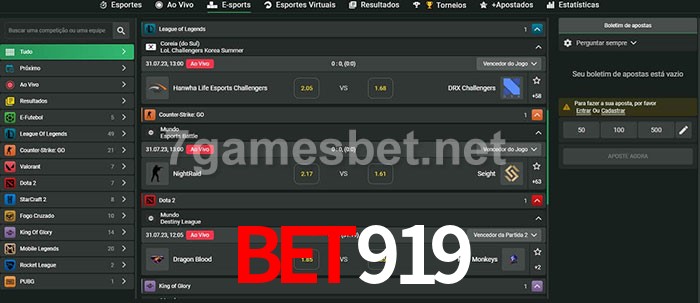 A aposta Bet919 oferece aos jogadores a experiência mais conveniente de apostas em eSports!